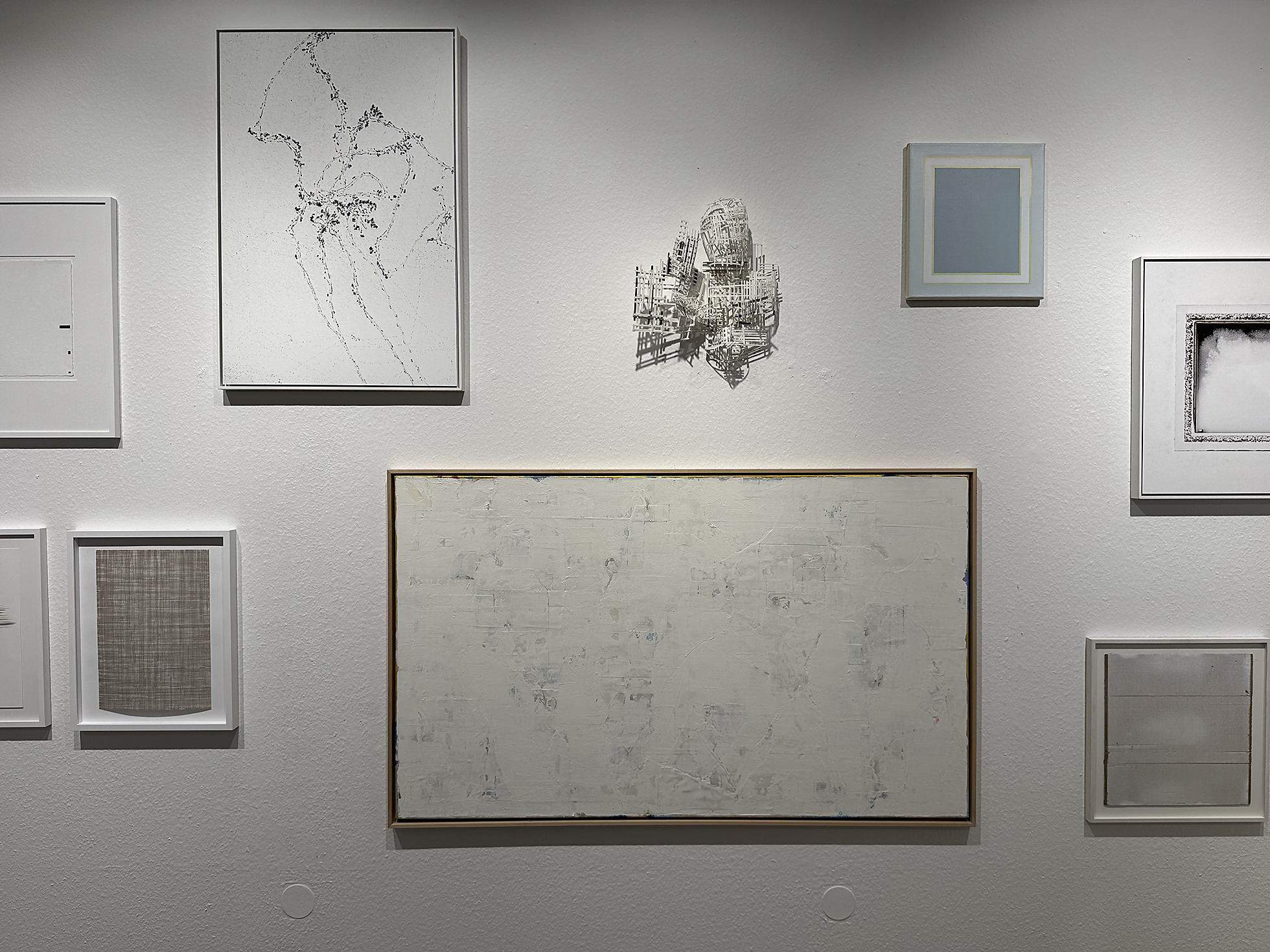 Last not least konturiert sich eine Werkgruppe, in der sich das Angefüllte bildhaft in Entleertes verwandelt oder umgekehrt. Fehling, Geiszler, Hogrebe, Kim und Weis verfolgen einen Prozess der Wandlung, in dem die Gegensätze noch nicht aufgehoben, sondern zwischen Präsenz und Leerraum in der Schwebe gehalten werden. Und uns Betrachter*innen überlassen, welchem Zustand wir gern folgen mögen.