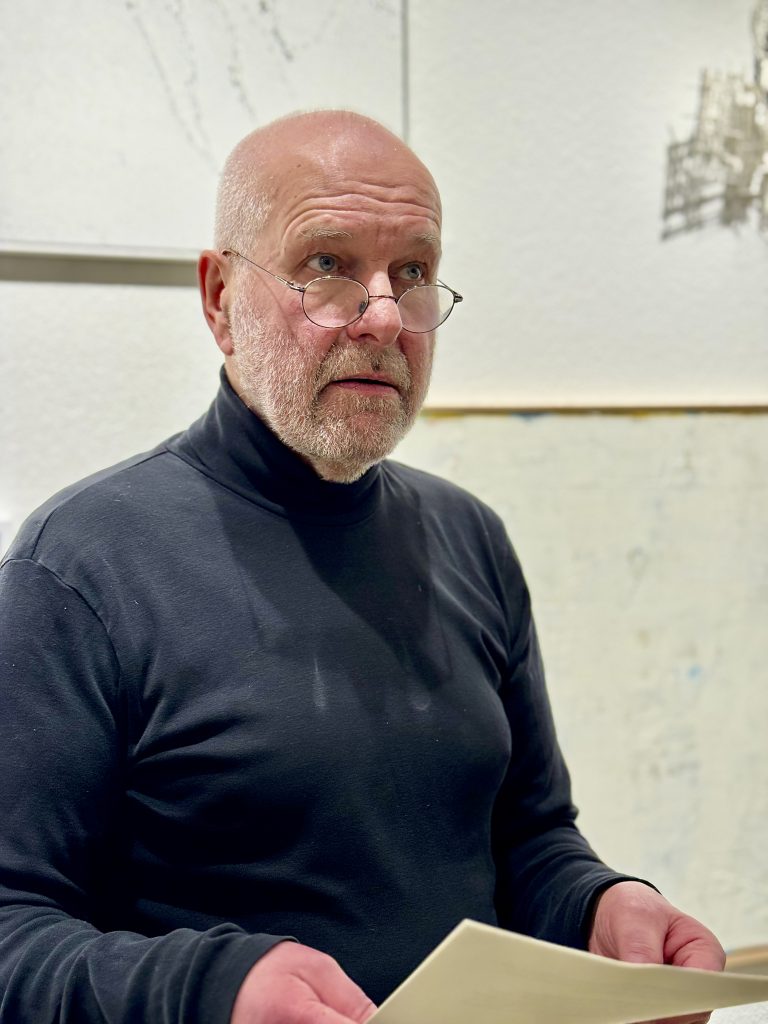 An der nun schon 4. Station, neu gemischt, aber eben auch auf die Räume hin reduziert und zugleich verändert durch Beiträge ansässiger Künstler*innen. Auch das eine Eigenheit des Projektes, das nun schon ins 4. Jahr geht. Startpunkt war der Kunstraum Braugasse in Hoyerswerda. Dann folgte die Erweiterung im BLMK Cottbus unter dem Titel „Leerraum weiß/schwarz“ und schließlich die Version „Leerraum 3.0“ in gänzlich anderer Kulturlandschaft, in der Wiesbadener Walkmühle vor einem Jahr.